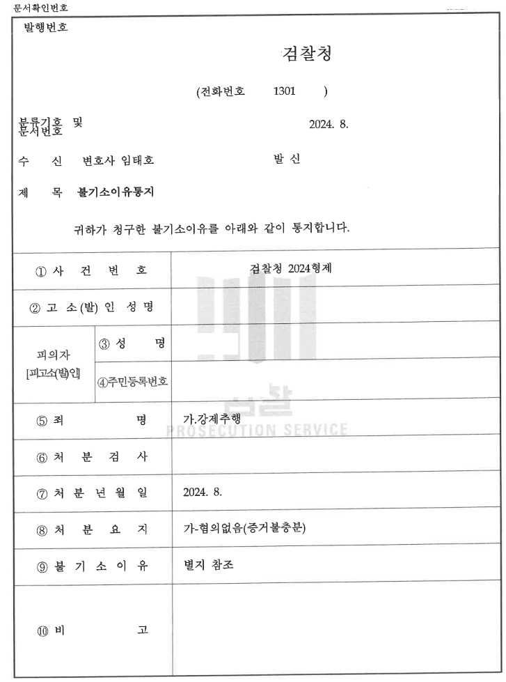 4. 며칠 지나지 않아 피신조서를 회신 받을 수 있었고, 변호인 의견서 기한내에 제출하여 경찰에서 불송치 처분 나왔지만, 고소인이 이의신청하여 사건은 검찰로 송치되었습니다. 그러나 추가적인 의견서를 제출하여