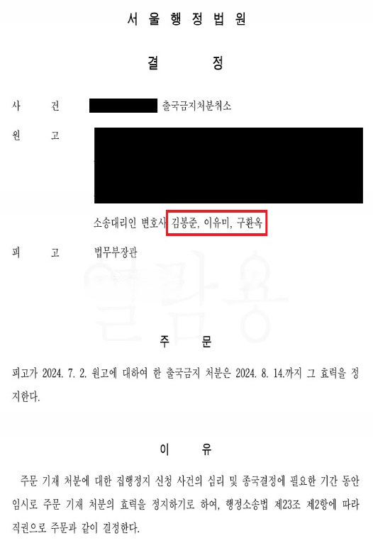고객으로부터 연락을 받자마자 출국과 관련된 사항을 확인할 수 있는 자료를 전달 받았고, 바로 서면 작업에 착수하였지요. 그러면서 앞선 사례들 중 참고할만한 선례를 분석하여 사건의 진행방향을 설정하였습니다.