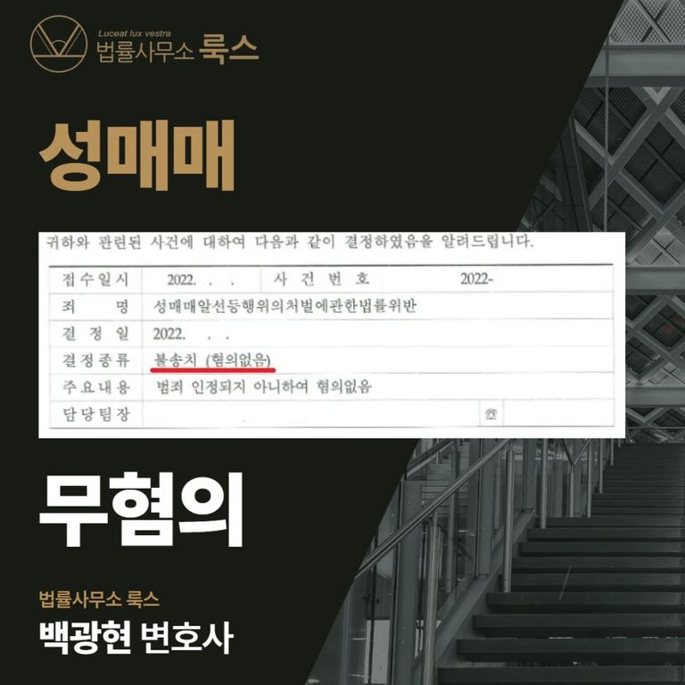 성매매, ‘무혐의’로 사건 종결시킨 해결사례