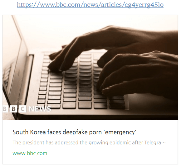 해외에서도 지금 우리 나라가 딥페이크 노출 영상에 관해 비상 상황에 직면했다고 연일 보도중이구요.