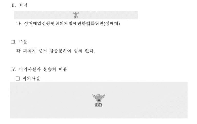 경찰에서 불송치결정이 나오면서 성매매 피의사건은 마무리되었습니다.