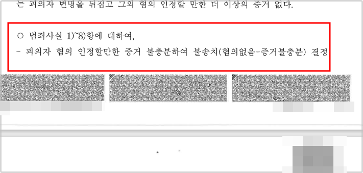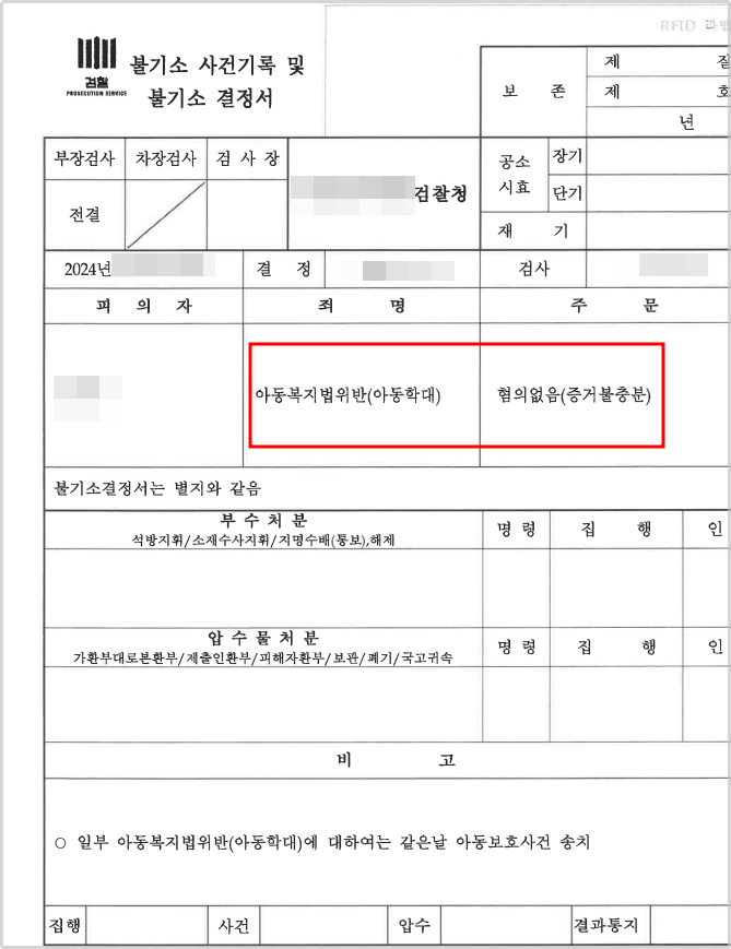 그 결과 나머지 10건의 범죄사실 중 9건은 불기소처분이 내려졌고, 단 한 건만 아동보호사건으로 송치되게 되었습니다.