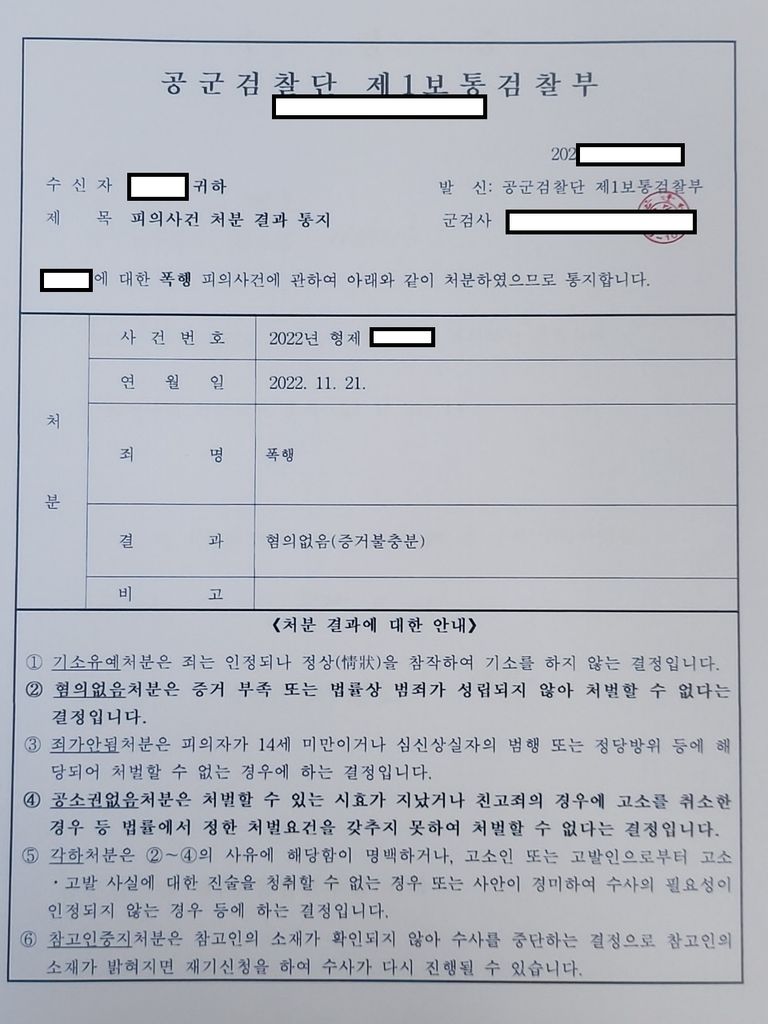 군사경찰 담당 수사관은 의뢰인의 혐의를 ‘불기소 의견’으로 군검찰에 송치하였고, 군검찰은 추가 조사를 거쳐 최종적으로 의뢰인의 혐의를 ‘혐의없음’으로 불기소 처분하였습니다.