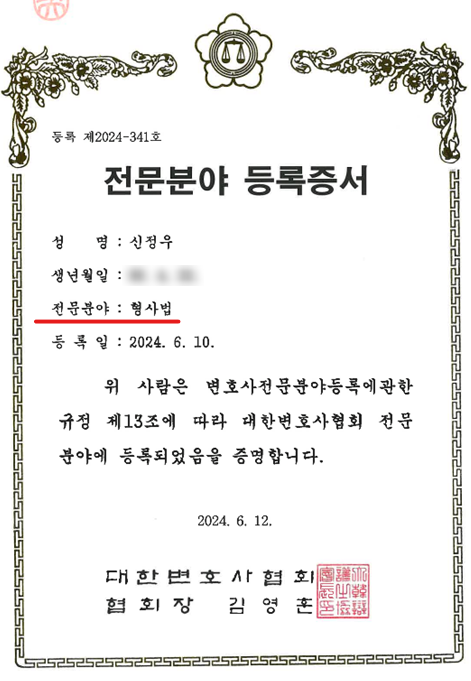 대한변호사협회 정식 등록 형사전문 변호사이자