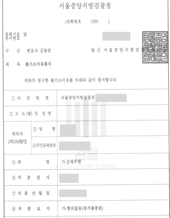 김봉준 변호사는 매우 적절한 타이밍에 추가 조사를 요청하고, 담당 검사와의 면담을 통해 직접 설득하는 과정을 거쳤을 뿐만 아니라 아주 합리적인 범위 내에서 합의를 하고 그 결과를 제출함으로써 검사가 보다 가볍게 불기소 결정을 할 수 있도록 도움을 줄 수 있었습니다.