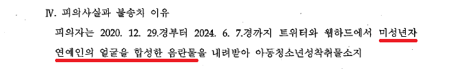 A씨는 2020. 12. 29.경부터 2024. 6. 7.경까지 트위터와 웹하드에서 연예인 딥페이크를 다운로드받아 소지하였습니다.