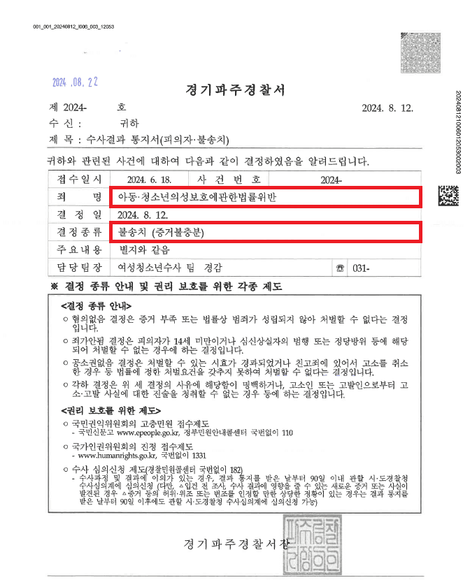 이러한 저의 조력을 바탕으로 A씨는 경찰 단계에서 '불송치(혐의없음)' 결정을 받음으로써 조기에 성범죄자가 될 위기에서 벗어날 수 있었습니다.