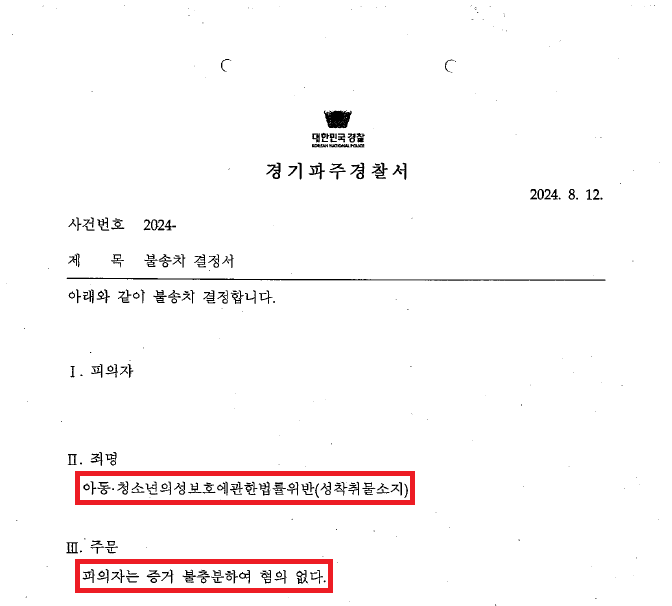 ③ 경찰 조사를 받은 후 "A씨가 연예인 딥페이크를 소지하고 시청한 것은 맞다. 그러나 A씨는 딥페이크 대상 연예인이 성인인 줄로만 알고 있었고 미성년자일 줄은 꿈에도 몰랐으므로, 아청법이 아니라 성폭법이 적용되어야 하는데, 성폭법은 성인 대상 딥페이크를 처벌하고 있지 않은바, 결국 A씨를 처벌할 수는 없다."라는 내용의 변호인의견서를 작성하여 제출하였습니다.