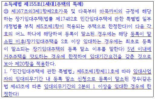 이 규정을 쉽게 풀어 설명하면 장기임대사업자의 경우 임대사업자등록기간의 반인 4년을 채우면 자진말소신청을 하더라도 양도소득세 혜택을 볼 수 있다는 뜻입니다.