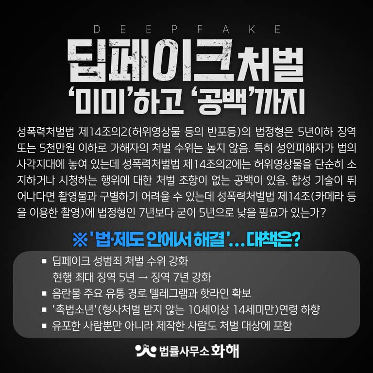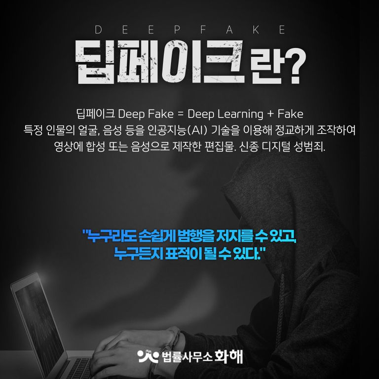 오늘은 법률사무소 화해에서 누구나 범죄의 대상이 될 수 있는 디지털 성범죄, 딥페이크에 대해 알려드릴게요.