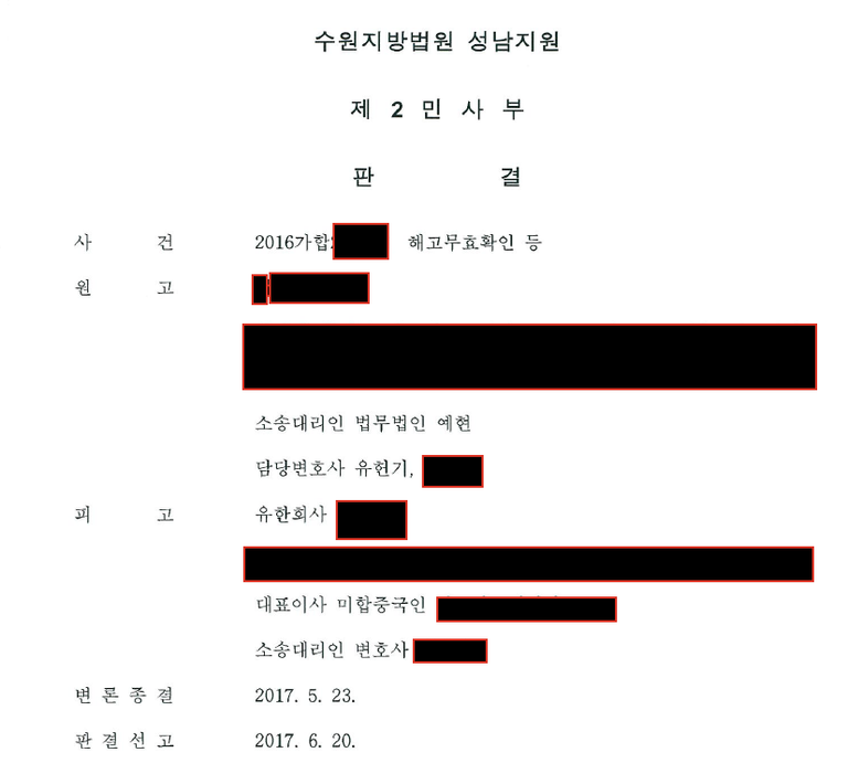 아래 사안의 경우, 외국계 반도체 기업이었는데, 글로벌 인수,합병 과정에서 부당하게 해고를 당하자, 이를 다투어 최종적으로 승소를 한 사안입니다.