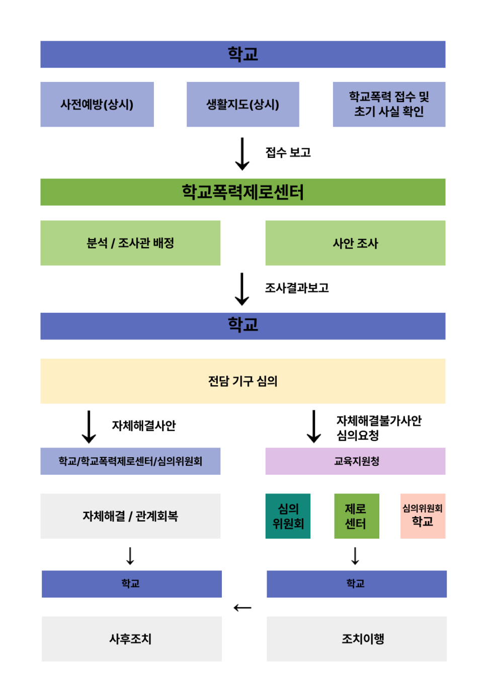 특히, 학교에서 모든 것을 다 해 줄 것이라고 생각해 안일하게 생각하고 대응하였다가 원하지 않는 결과가 나올 수 있어 초기부터 적극적으로 대응해야 합니다.