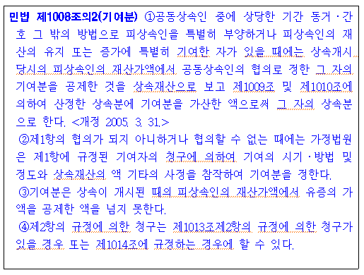 그런데 기여분이라는 것이 있습니다. 기여분에 따라 상속분을 달리 주장할 수도 있는 것이지요.