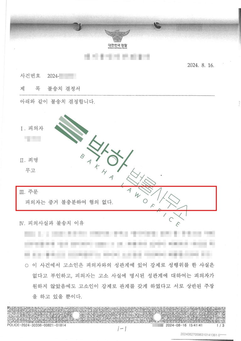 불송치 결정 직후 가해자는 피해자를 무고죄로 고소하였고, 피해자는 무고죄 방어를 위해 박하 법률사무소를 찾아오셨습니다.