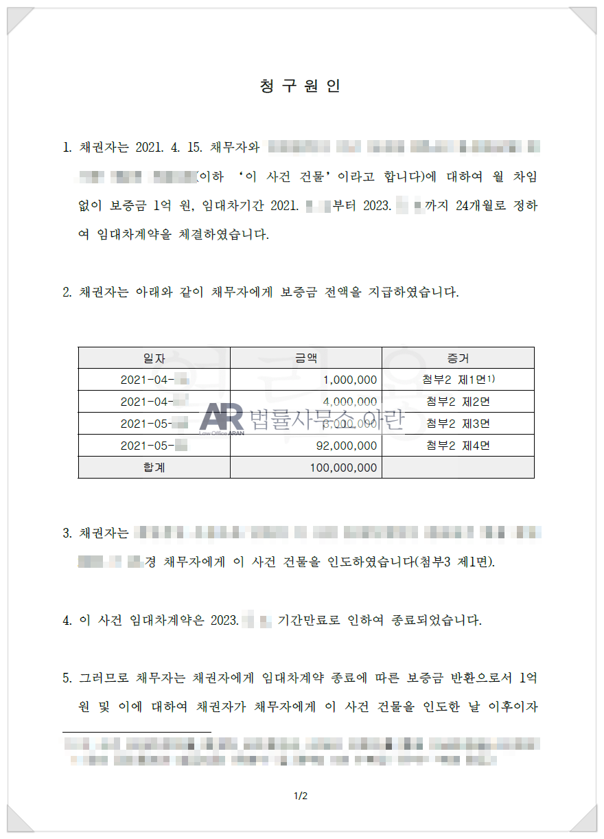 사건명 : 임대차보증금