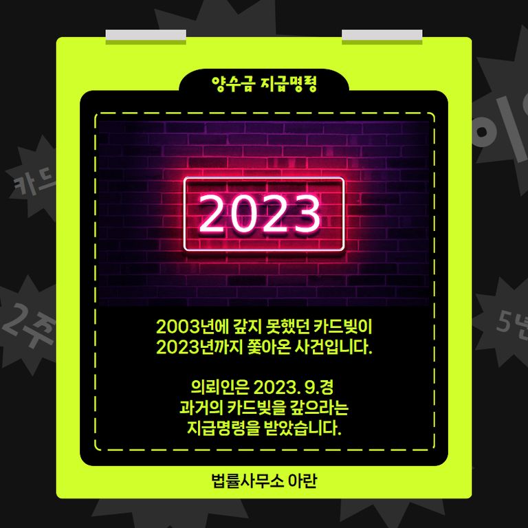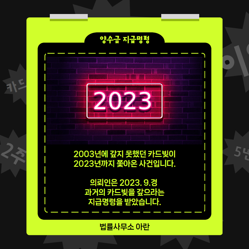 그 내용인 즉, 2003년경의 카드값을 아직 갚지 못했고, 그 카드대금 채권을 대부회사에서 양수하였으니, 의뢰인은 지금이라도 대부회사에 카드값을 갚으라는 내용이었습니다.