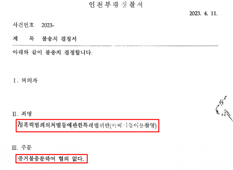 ‘혐의없음' 불송치 결정을 받아 종결되었습니다.