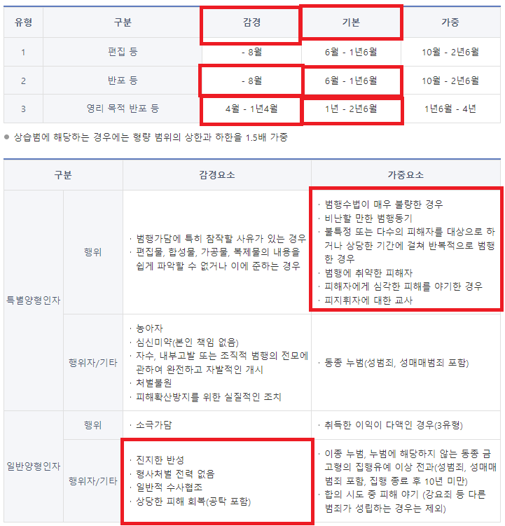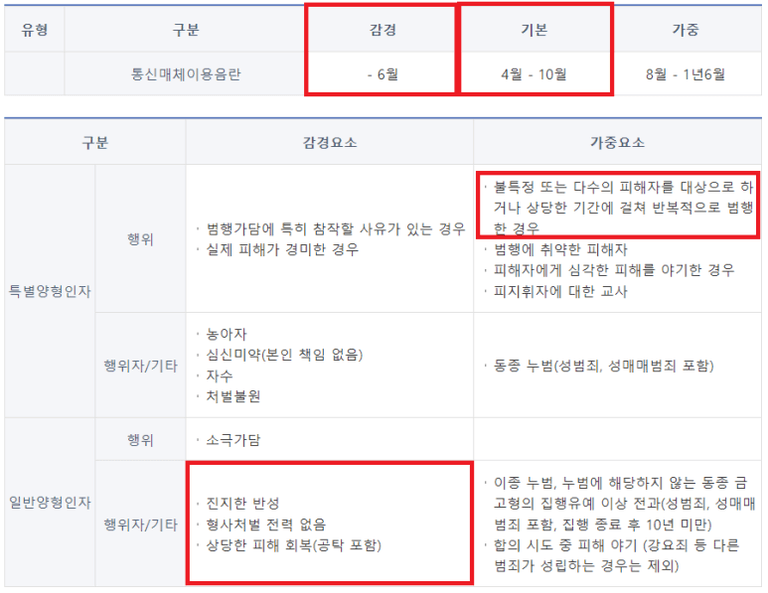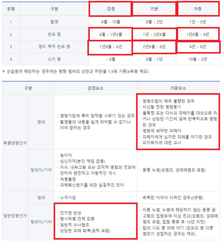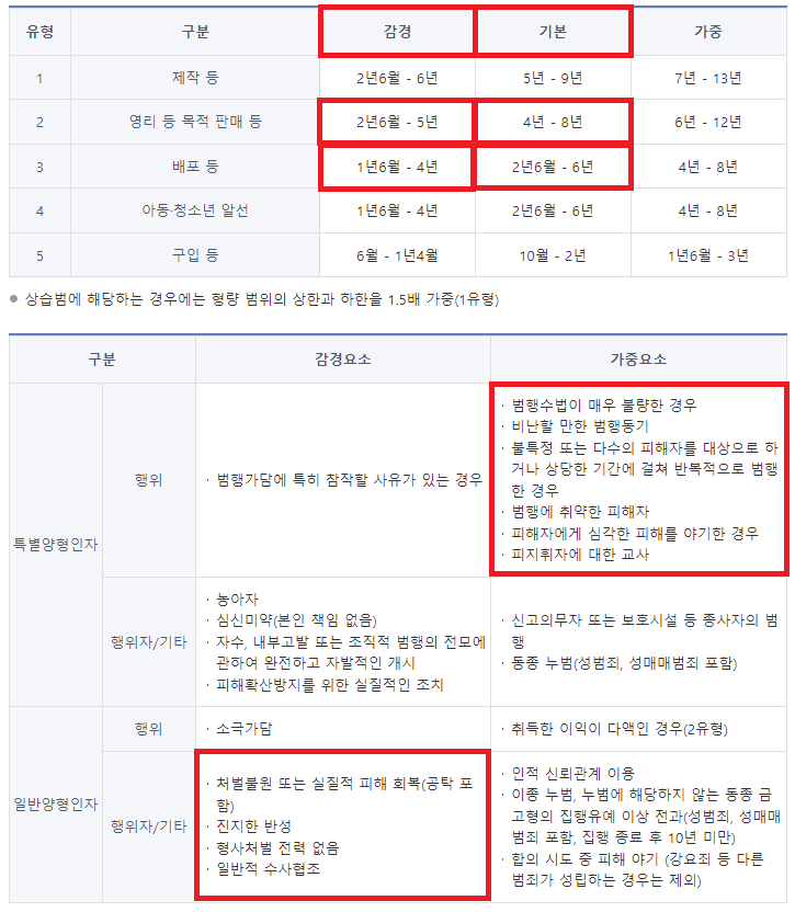 '기본' 처단형 범위는 징역 1년 ~ 2년 6개월