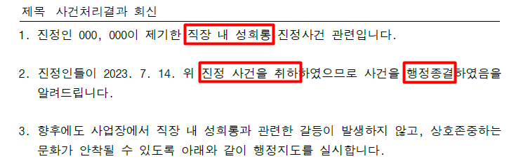 본 진정 사건은 '취하종결'로 마무리 되었습니다.