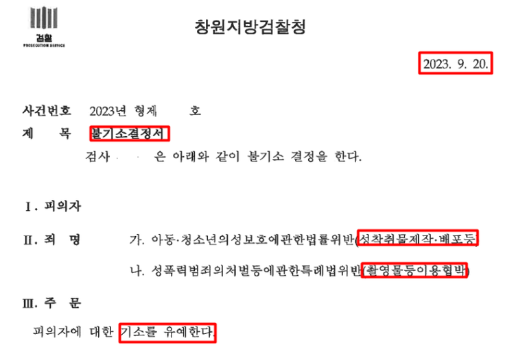이에 본건은 기소유예 처분을 받아 마무리되었습니다.