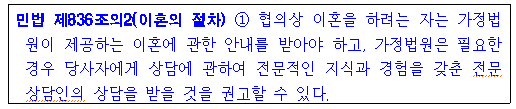 또한 나눠야 할 재산이 있다면 이용하기에 적합하지 않습니다. 말 그대로 이혼 의사만 확인해주니까요.