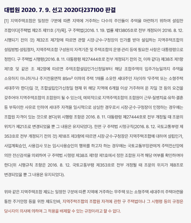 안흥동 지역주택조합은 위의 사진에서와 같이 이렇게 준조합원들을 지난 수년간 관리해 오고 있는데, 안타깝게도 이와 같은 준조합원 혹은 임의세대는 지역주택조합원 자격 요건에 관한 강행 규정을 잠탈하는 계약이자 계약 체결 당시부터 목적 달성이 원시적으로 불가능한 계약으로서 효력이 전혀 없는, 즉 계약 무효라는 것이 대법원의 판례입니다. 대법원의 판결에 따르면 '지역주택조합 조합원 자격에 관한 주택법 시행령 규정들은 당사자의 의사에 의하여 그 적용을 배제할 수 있는 규정이라고 할 수 없다'고 판시하고 있으며(대법원 2020. 9. 7 선고 2020다237100 판결) 또한 최근 수원 고등법원에서도 '준조합원 내지 임의세대는 지역주택조합 계약 체결 당시부터 조합원 자격을 구비할 수 없음이 명백하므로 결국 조합가입계약은 그 계약 체결 당시부터 목적 달성이 원시적으로 불가능하여 효력이 없어 무효이다'라고 판시하였습니다. (수원고등법원 2022. 5. 20 선고 2021나18777 판결)