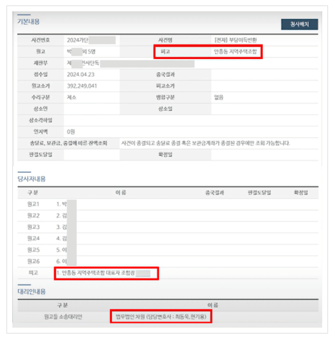 이에 최근 최동욱 변호사는 법률상담을 문의하신 준조합원 6명을 대리하여 안흥동 지역주택조합을 상대로 민사소송을 제기하여 아래와 같이 현재 재판이 진행 중에 있습니다. 앞서 언급드린 바와 같이 임의세대·준조합원은 지역주택조합 계약 체결 당시부터 조합원 자격을 구비 할 수는 없음이 명백해서 무효에 불과하다는 것이 법원 판결이므로 특별한 사정이 없는 한 이번 소송에서도 승소할 것으로 예상 됩니다. 따라서 만약 임의세대·준조합원으로 조합 가입 계약을 체결하신 다른 피해자 분들이 계시다면 언제든지 아래의 연락처로 연락하셔서 최동욱 변호사와 직접 법률진단을 받아보시길 바랍니다.