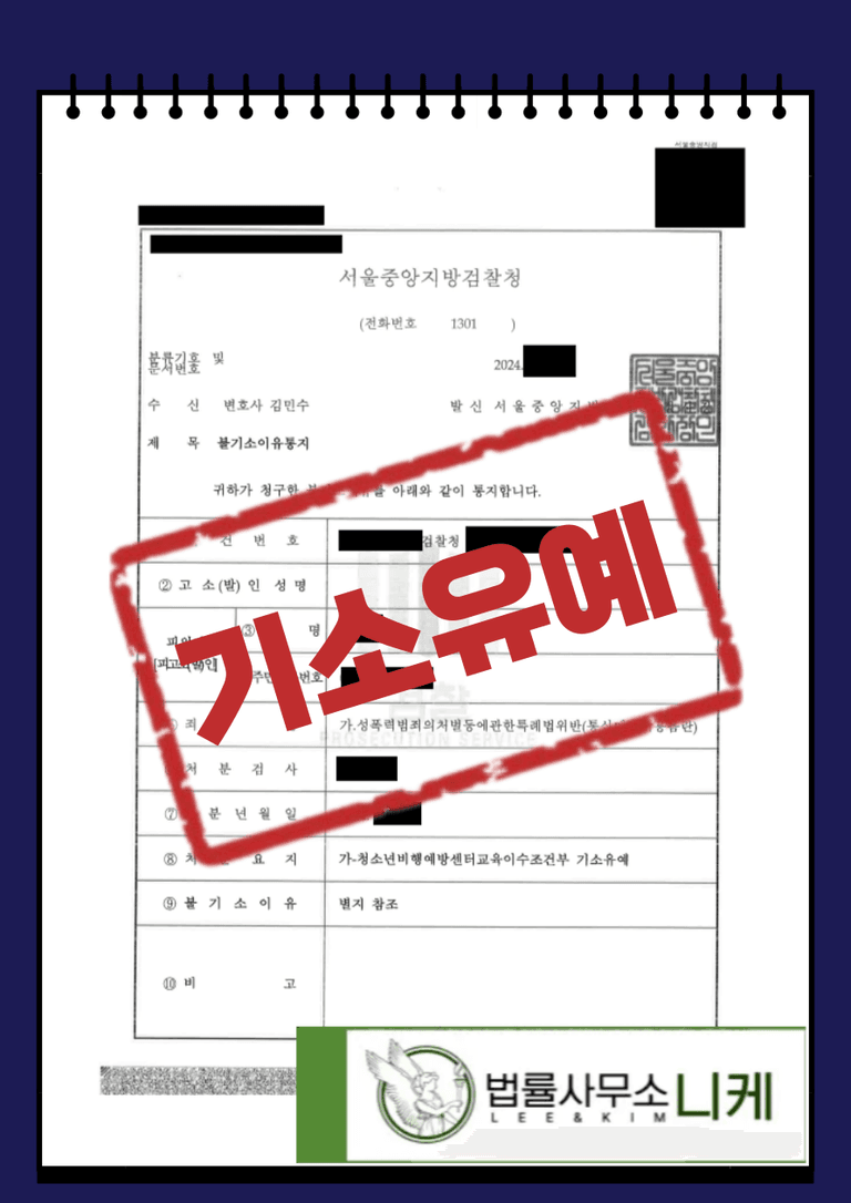 그 결과 의뢰인은 성폭력범죄의처벌등에관한특례법(통신매체이용음란) 혐의를 받고 법정형으로 최소 벌금형 최대 2년의 징역형을 선고받을 수 있었음에도 불구하고 기소유예 처분을 받을 수 있었습니다.