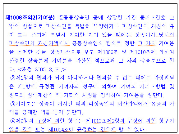 민법은 기여분에 대해 다음과 같이 규정하고 있습니다.