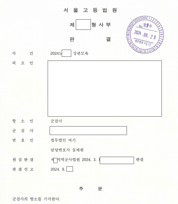 안녕하세요. 오늘은 서울고등법원에서 선고된 군사법원 사건의 항소심 결과를 포스팅합니다. 1심에서 상관모욕으로 기소가 되었지만 무죄가 선고되었고, 이에 군검사가 항소를 하여 서울고등법원에서 판결이 선고되었습니다.