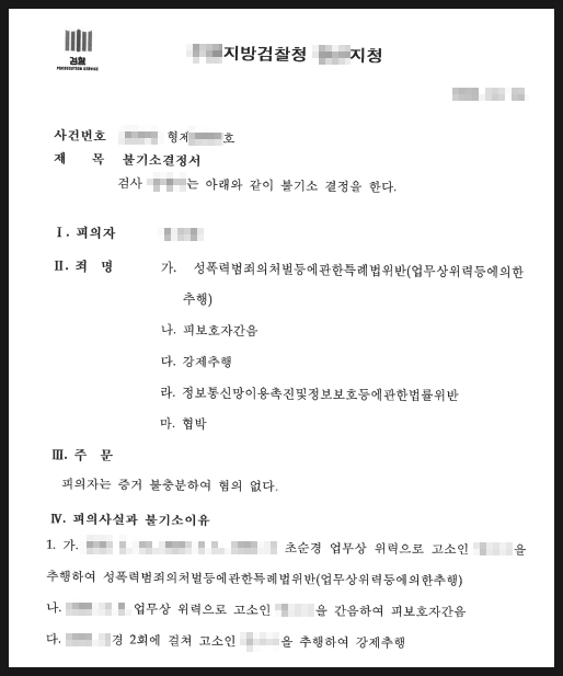 ![[성추행, 성폭력] 업무상위력추행,협박외 4개/ "전부 불기소"](/_next/image?url=https%3A%2F%2Fd2ai3ajp99ywjy.cloudfront.net%2Fuploads%2Ftitleimage%2Foriginal%2F5c32f5d8bfec82877048efa2-original.jpg&w=3840&q=75)
