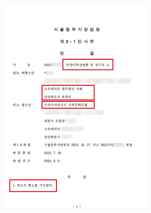 이러한 노력의 일환으로 최근 구의사거리지구 지역주택조합을 상대로 1심에 이어 2심에서도 성공적으로 승소하여 이에 대해 알려드리고자 합니다.