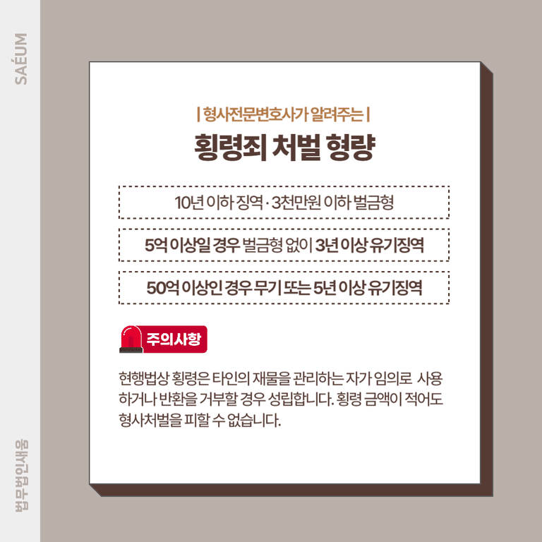 문제는 금액이 커질 경우 가중처벌의 대상이 된다는 점입니다. 예컨대 오스템임플란트 사건의 경우 2,000억 원이 넘는 금액을, 우리은행 사건에서는 600억 원 이상의 자금을 횡령한 사실이 드러났습니다. 금액이 커질 경우 특정경제범죄 가중처벌 등에 관한 법률이 적용되며, 5억 원 이상일 경우 3년 이상의 유기징역, 50억 원을 넘으면 무기 또는 5년 이상의 유기징역이 선고될 수 있습니다.