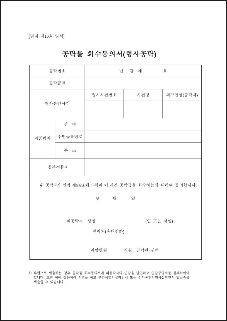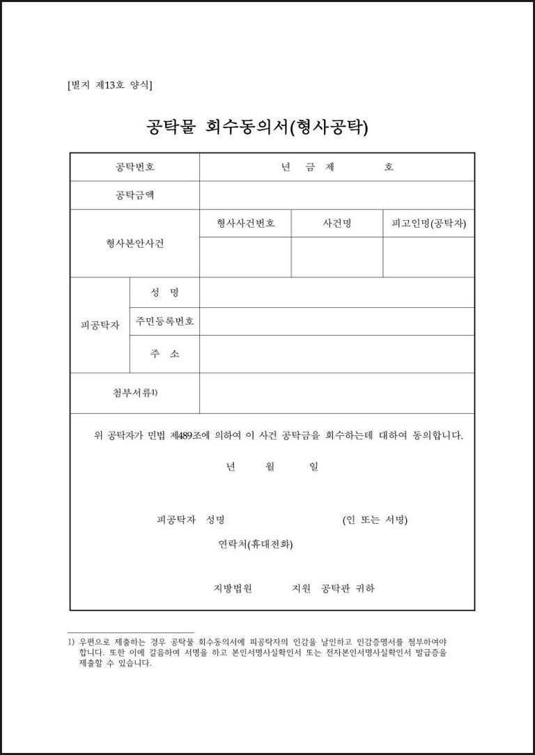 가해자가 공탁금을 회수해 가는 것에 동의를 하고