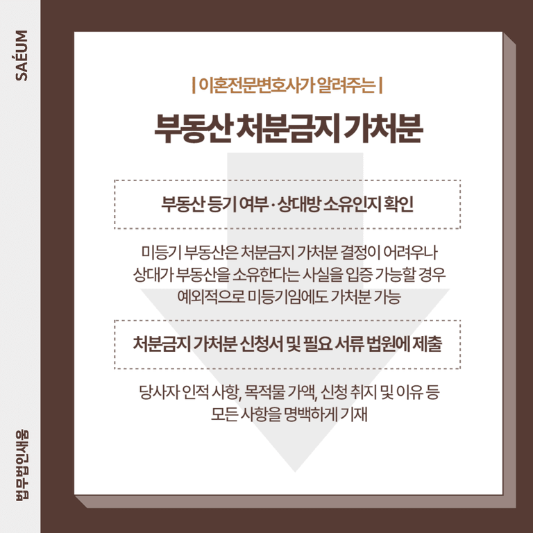 상대방이 이혼 후 재산분할청구권을 행사할 것을 우려해 미리 선제적으로 가처분, 가압류 등을 신청해 둘 수 있습니다. 정당하게 청구한 것이라면 이에 대응하기 어려우며 받아들여야 하겠지만, 상대방이 분할 가능한 재산에 포함되는 것을 막기 위해 가등기 등을 신청하는 상황이 발생했다면, 해당 사안이 사해행위임을 입증하고 처분금지 가처분 결정을 이끌어내야 합니다.