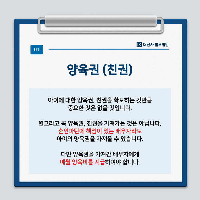 반면 양육권/친권을 원하는 상대방이 있다면 양육권을 포기한 일방은 양육권을 가져간 배우자에게 매월 양육비를 지급해야 합니다.