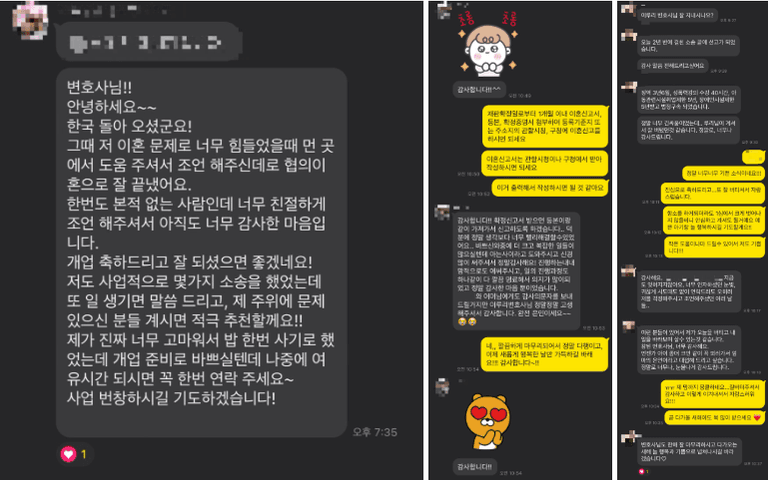 때문에, 여러분이 좋은 결과와 그로 인해 더 많은 미래를 그리고 싶으시다면, 다양한 의뢰인들이 남긴 후기와 실제 감사 인사들을 보고, 변호사 선임을 결정하시길 바랍니다.