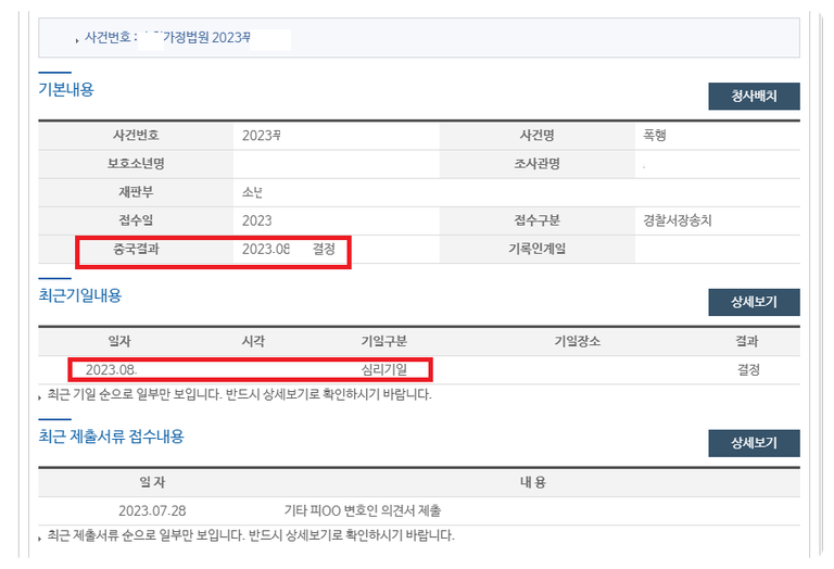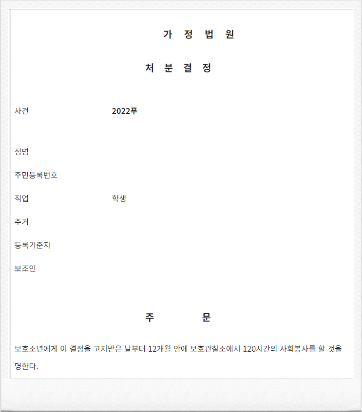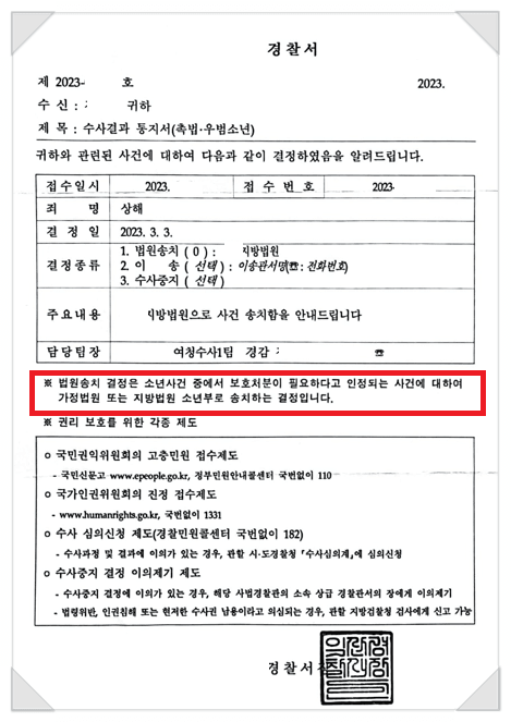 ③ 소년보호사건을 송치받은 소년부 판사는 송치서와 조사관의 조사보고에 따라 사건을 심리할 필요가 있다고 인정하면 심리를 개시하는 결정을 하게 됩니다.