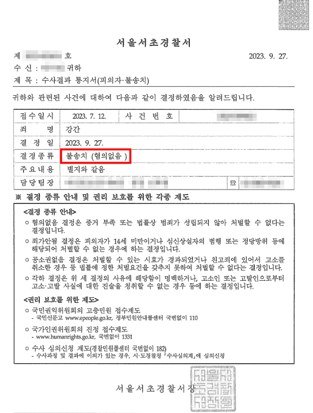 위와 같은 변호인의 주장을 받아들인 경찰은 의뢰인의 혐의에 대해 불송치 처분을 내렸습니다.