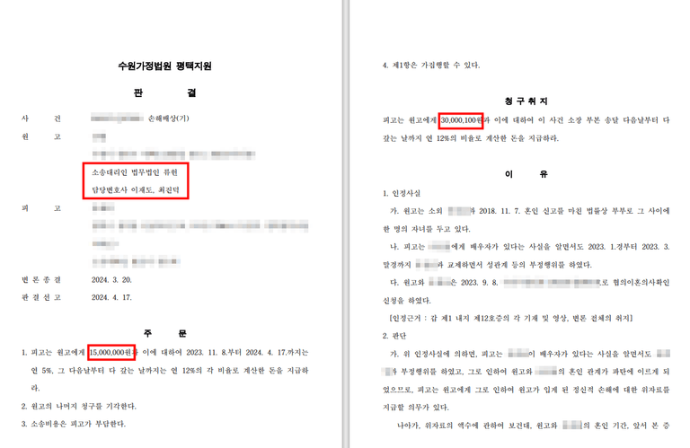 의뢰인은 1천5백만 원의 위자료를 지급받을 수 있었습니다.