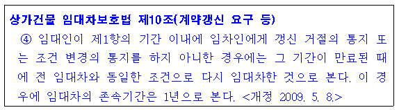 ② 상가건물 임대차보호법상 10년의 임대차계약의 보장기간이 끝난 뒤 신규임차인을 구해온 경우라도 법원은 권리금 지급을 방해한 정황이 있다면 이에 기한 손해배상의 청구가 가능하다고 보았습니다(대법원 2019. 5. 16. 선고 2017다225312, 225329 판결).