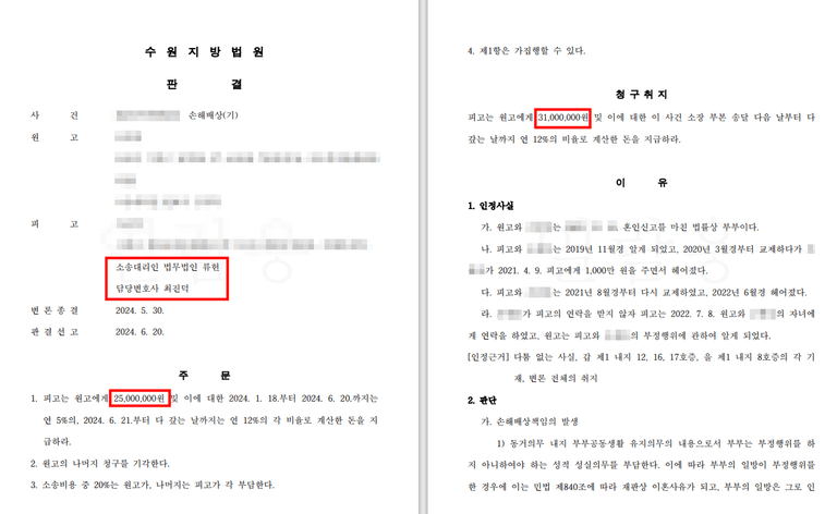 의뢰인은 5백만 원을 감액받아 2천5백만 원의 위자료만을 지급할 수 있었습니다.