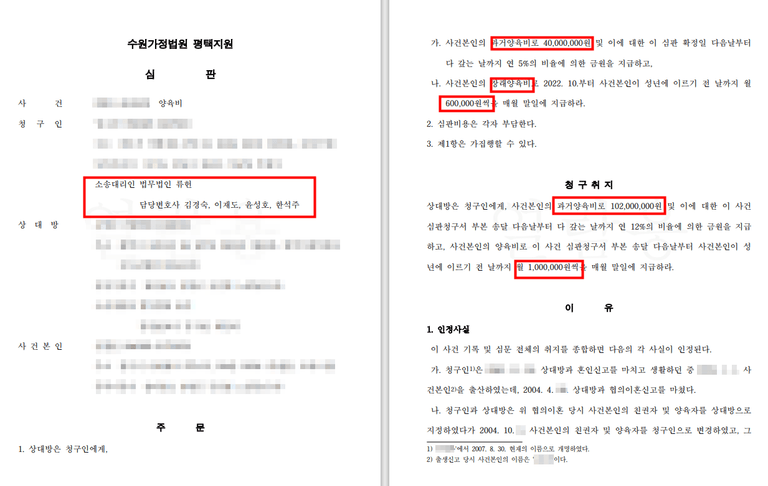 사건 당시 사건본인은 일반 고등학교보다 경제적 상황이 더 뒷받침되어야 하는 예술고등학교를 재학하고 있었고 사건본인이 고등학생이 될 때까지 상대방은 지속해서 발생 되는 양육비를 주기적으로 지급하지 않았기에 최대한 많은 과거 양육비와 장래 양육비를 받았어야 하는 상황이었습니다.