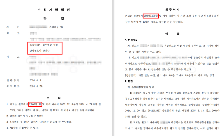 대리인은 외도의 증거와 상간남의 강압적 요구가 있었던 점을 부각하여 재판부에 제출하였습니다.