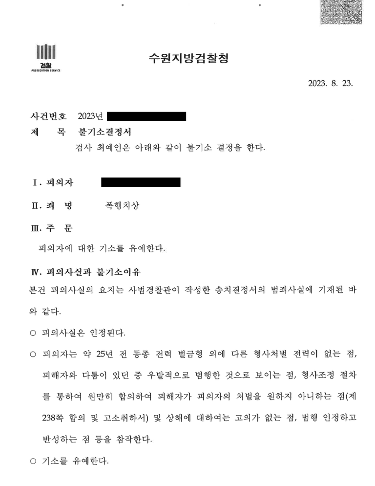 ![[💯기소유예]아파트 관리실 폭행치상 건 불기소사례](/_next/image?url=https%3A%2F%2Fd2ai3ajp99ywjy.cloudfront.net%2Fuploads%2Ftitleimage%2Foriginal%2F5cacb7a981a8053985bf2ae0-original.jpg&w=3840&q=75)