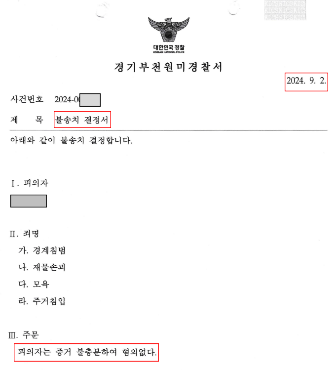 2024. 9. 2. 부천원미경찰서로부터 전부 불송치 결정을 받은 성공사례