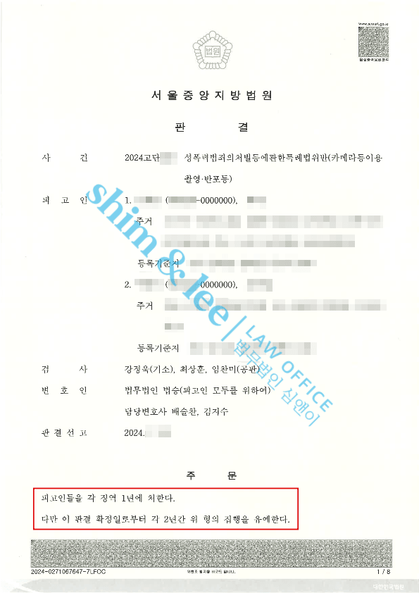 - 의뢰인께서는 부가 처분까지 세심하게 내려준 판결에 기뻐하셨고, 수사 및 공판 과정에 이르기까지 긴 시간 동안 심앤이의 세심한 케어가 큰 도움이 되었다고 말해주셨습니다.