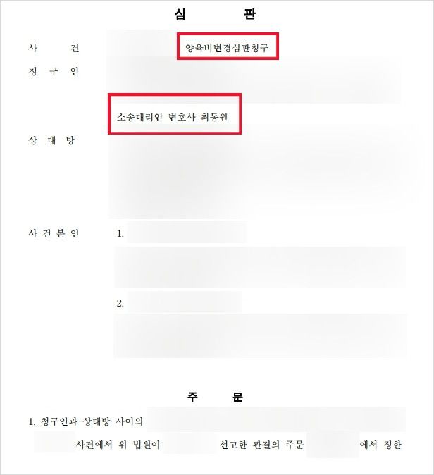 하지만 최동원 변호사는 양육비를 감액하는 것이 오히려 자녀들의 복리에 도움이 된다는 논리를 구성하여 소송을 제기하였습니다. 구체적인 사실관계는 밝히기 어렵지만, 1) 양육비를 의뢰인이 감당할 수 있는 수준으로 감액해야 양육비 지급이 원활하게 이루어질 수 있다는 점, 2) 양육자의 경제력이 상당하여 당장 양육비를 조금 감액하더라도 자녀들의 복리에 영향은 거의 없다는 점 등을 적극 주장, 입증하였습니다.
