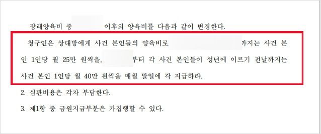 양육비를 정하는 절대적인 기준은 "자녀의 복리"입니다. 만약 자녀들이 성장한다면 그에 맞춰 양육비를 늘리는 것이 자녀들의 복리에 부합하는 일이지, 자녀들이 성장하였는데도 양육비를 줄인다는 것은 자녀의 복리에 반할 가능성이 매우 큽니다. 그만큼 양육비 감액 청구 소송은 쉽지 않다는 뜻입니다.