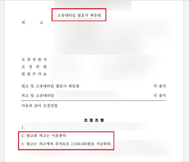 3. 결과: 위자료 소액(250만원)으로 이혼 성공